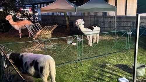 Rollende Arche - Alpakas, Ziegen und Hasen zum streicheln vor der Kirche